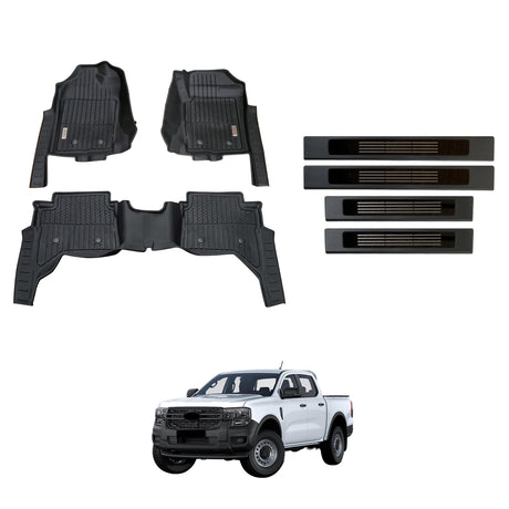 5D Moulded Floor Mats + Black Door Sill Protector for Ford Everest 2015-2022