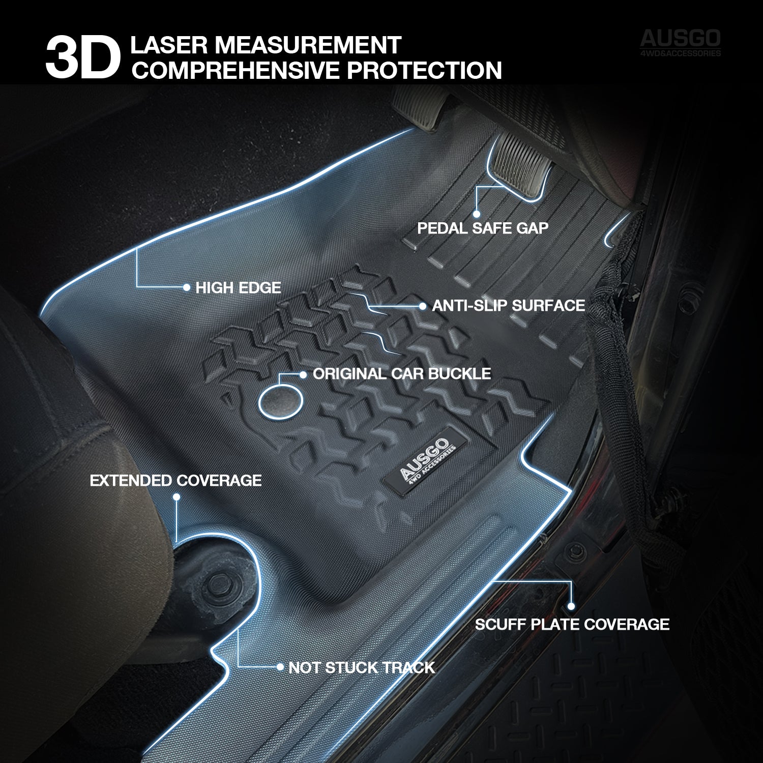 - Perfect Fit: Laser-measured and precision-moulded to seamlessly cover the floor, edges, door sills, and under-seat areas.