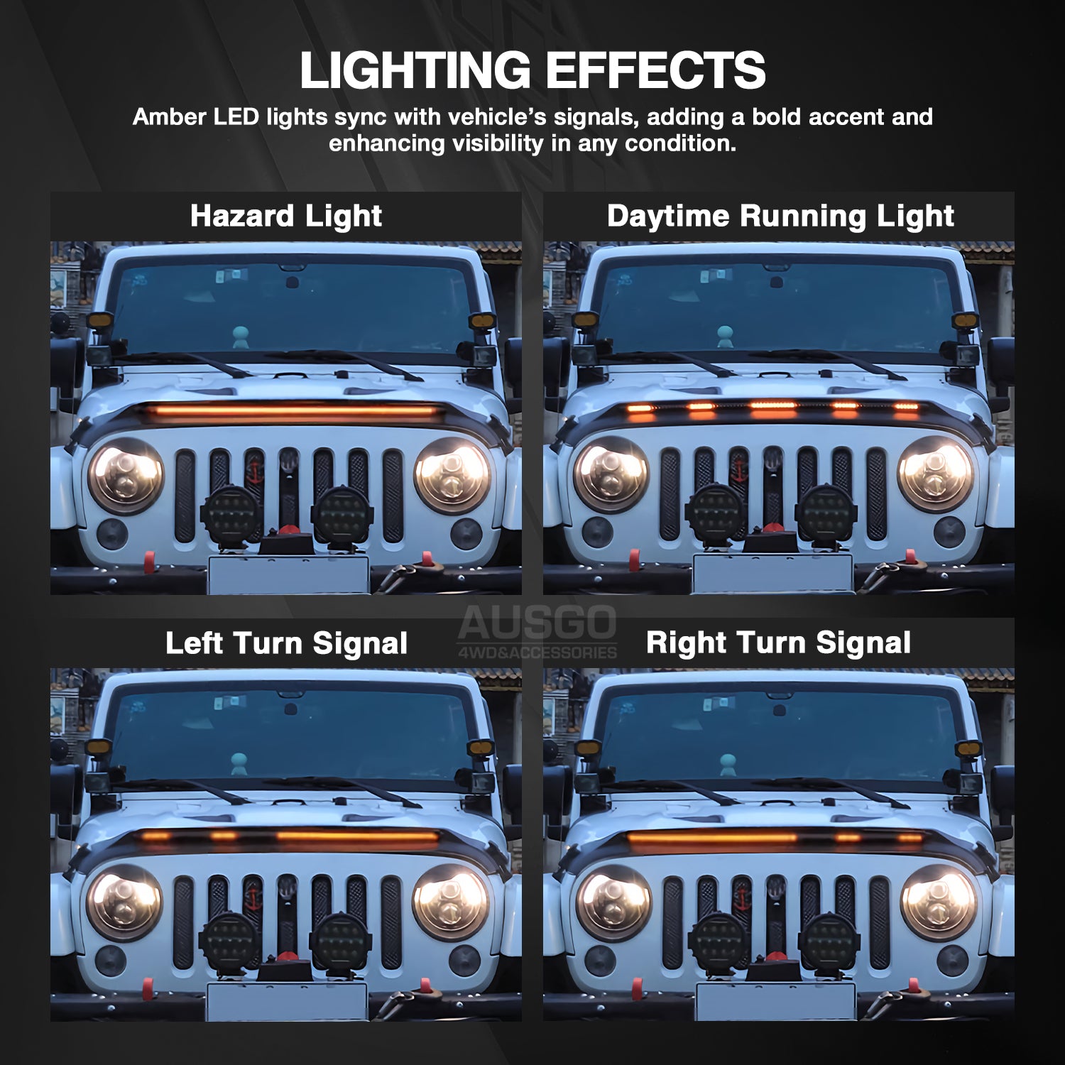 Enhance the look and protection of your Wrangler with this LED light bonnet protector guard. Designed to integrate with your vehicle’s steering lights, it provides an upgraded appearance while offering durable protection against debris, rocks, and scratches.