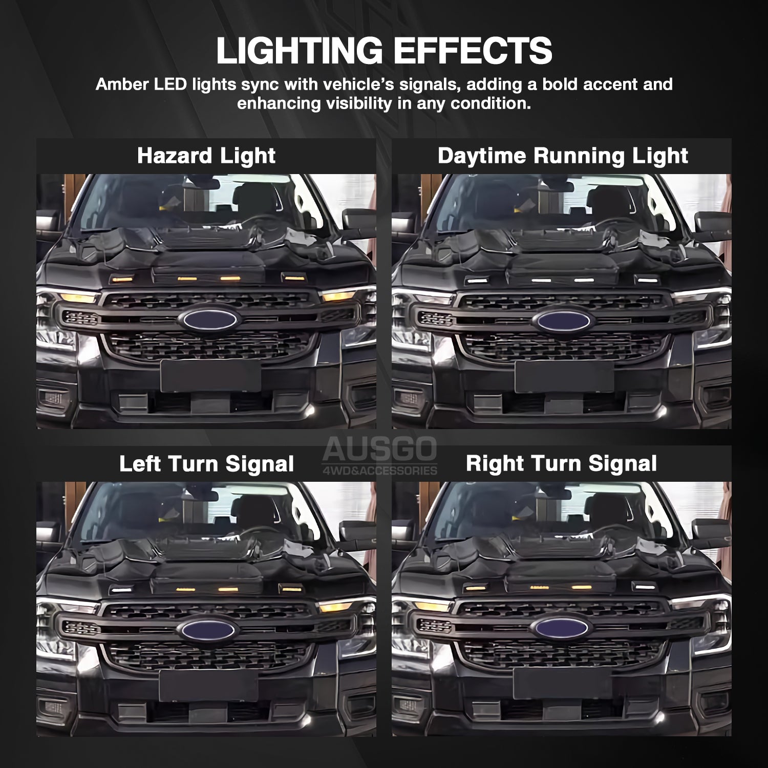 Enhance the look and protection of your Ranger with this LED light bonnet protector guard. Designed to integrate with your vehicle’s steering lights, it provides an upgraded appearance while offering durable protection against debris, rocks, and scratches.