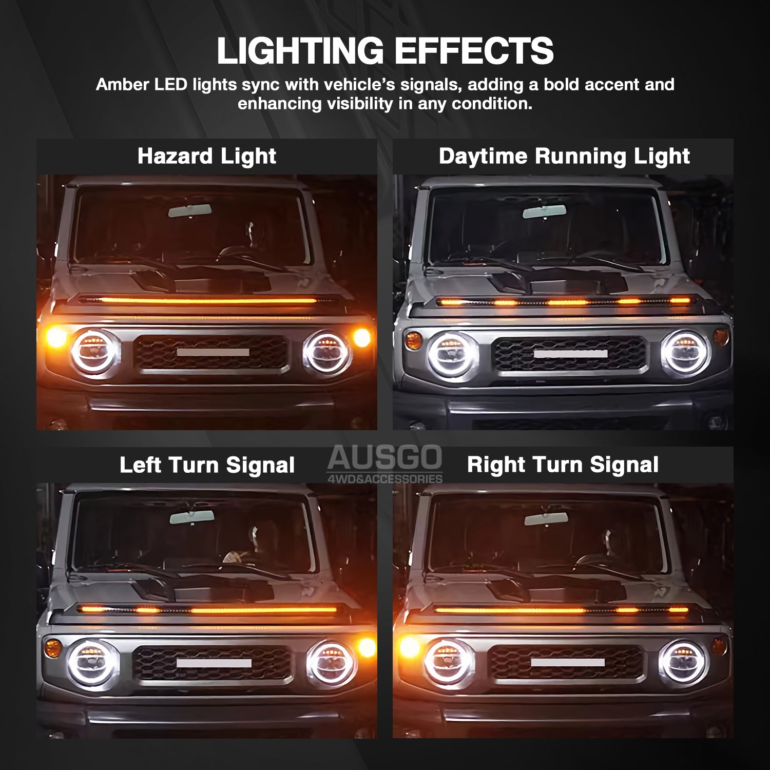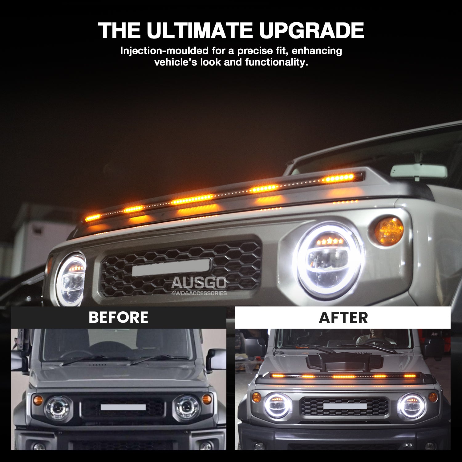 Enhance the look and protection of your Jimny with this LED light bonnet protector guard. Designed to integrate with your vehicle’s steering lights, it provides an upgraded appearance while offering durable protection against debris, rocks, and scratches.
