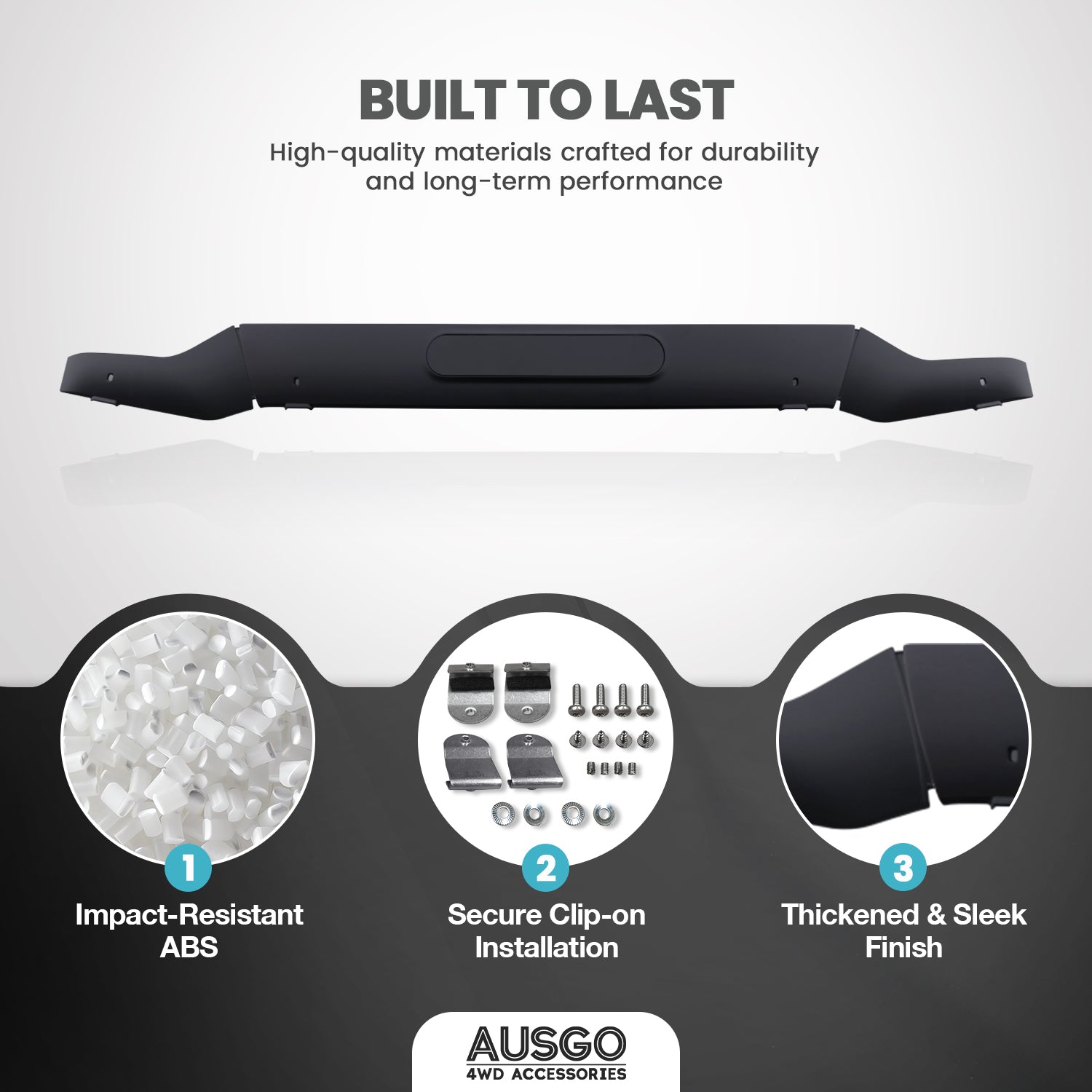 - Custom designed and injection moulded to fit the bonnet perfectly.