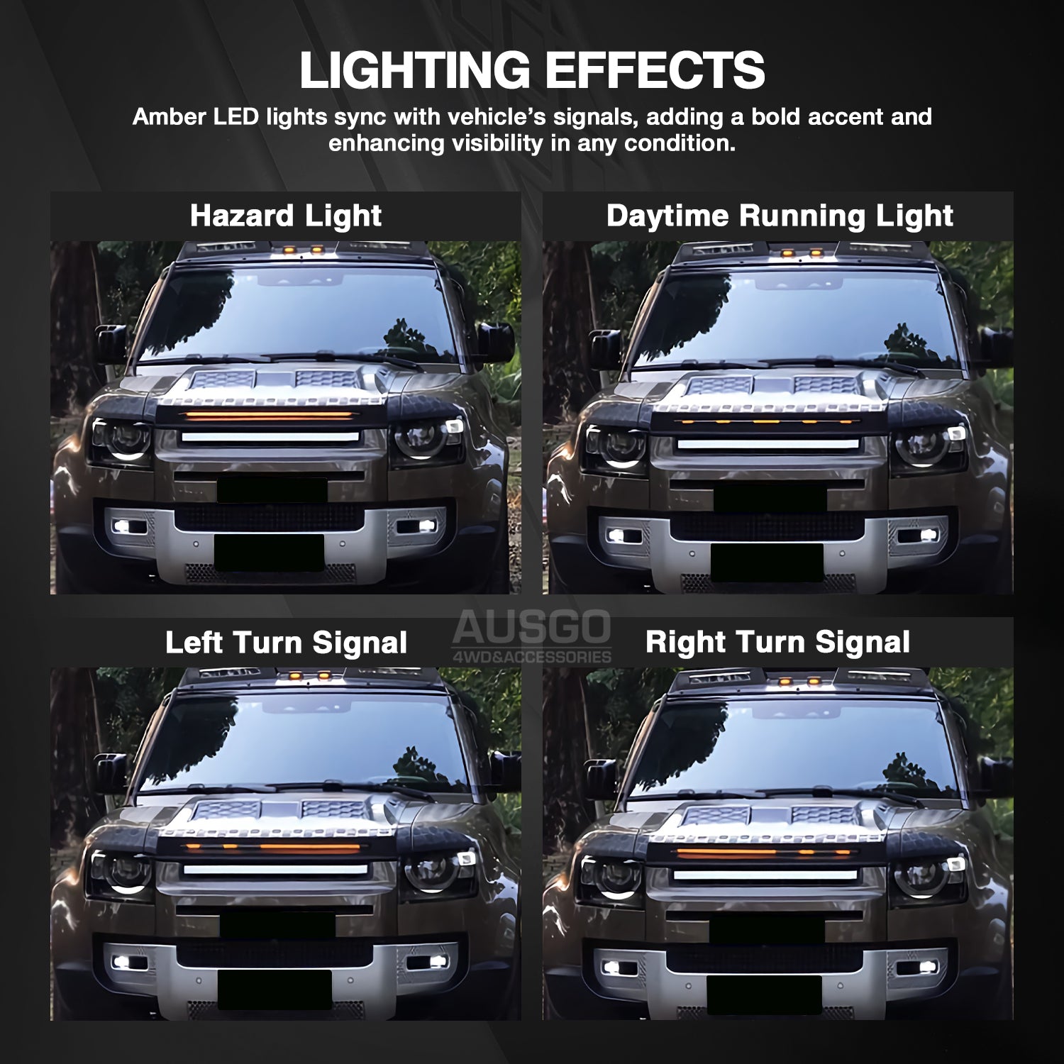 Enhance the look and protection of your Defender with this LED light bonnet protector guard. Designed to integrate with your vehicle’s steering lights, it provides an upgraded appearance while offering durable protection against debris, rocks, and scratches.