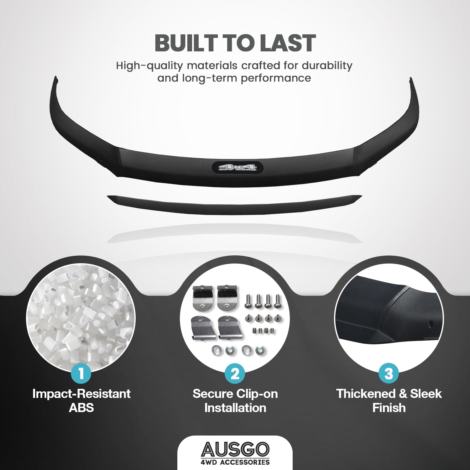 - Deflects airflow, directing objects up and over vehicle to protect windshield.